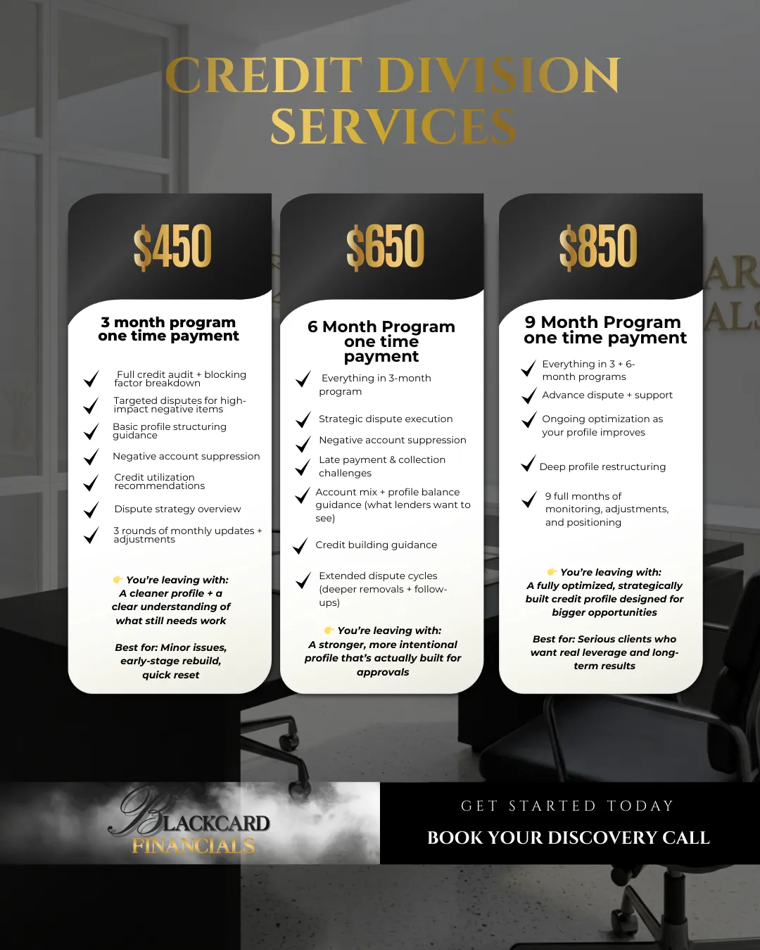 This is a Financial Positioning Program, which means we focus on fixing what’s actually blocking your approvals while also restructuring your credit profile the right way.